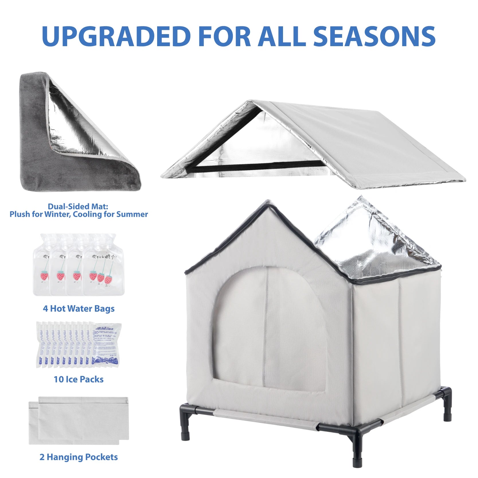 - All-season insulation with a double-layer roof and a plush reversible cushion keeps warmth in winter and coolness in summer, plus extra cozy softness.