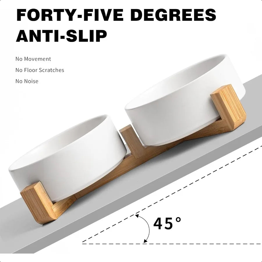 Hign-concerned Elevated Dog Cat Bowl Set Wooden Stand